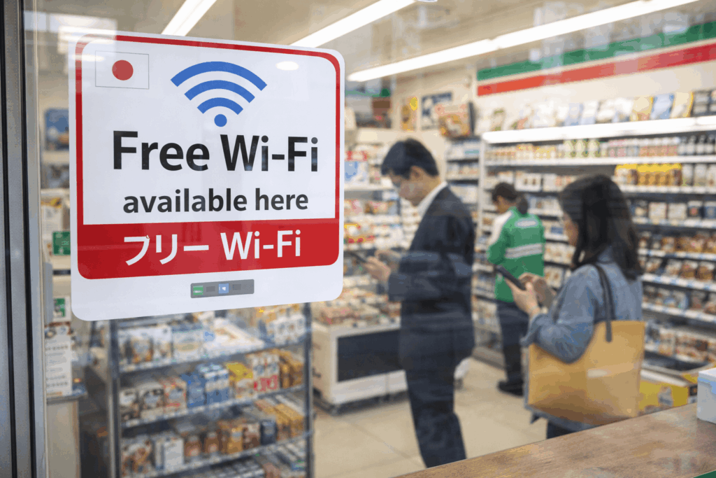 Convenience stores like 7-Eleven, FamilyMart, and Lawson offer free Wi-Fi – incredibly useful since these stores appear on virtually every block in urban areas. Major train stations provide free Wi-Fi in waiting areas and platforms. Airports, tourist information centers, and shopping districts typically offer complimentary access.
