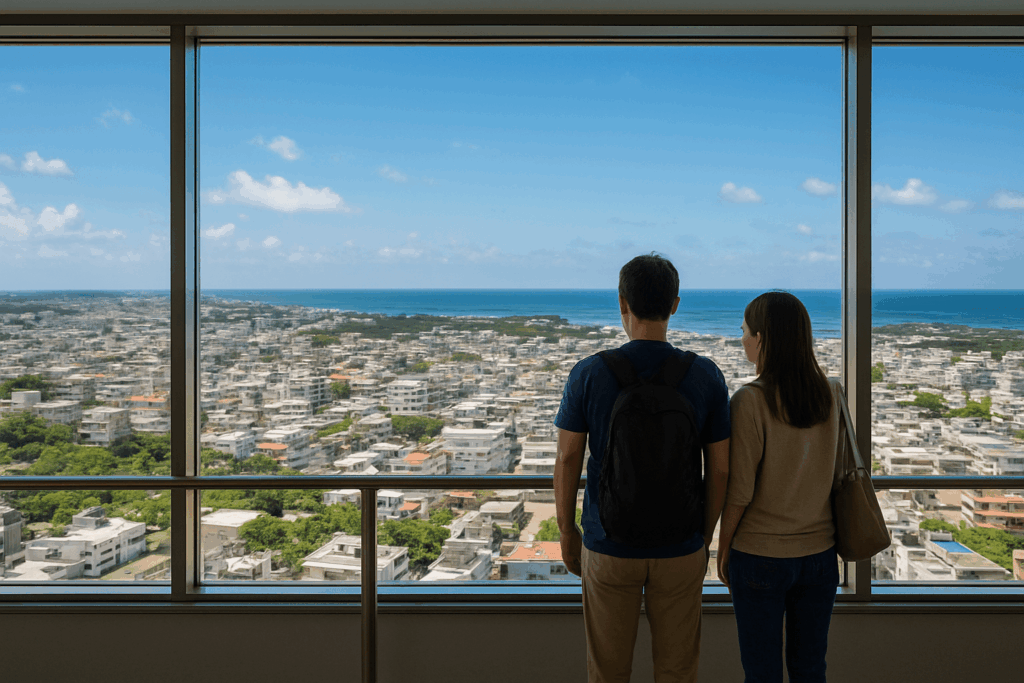 Okinawa City Hall’s tower includes an observation deck where you can get a free (or very low-cost) panoramic view across Okinawa City, Kadena Air Base, and out toward the Pacific Ocean on a clear day. It’s not a tourist trap—more like a hidden local viewpoint, so it’s usually quiet and relaxed.